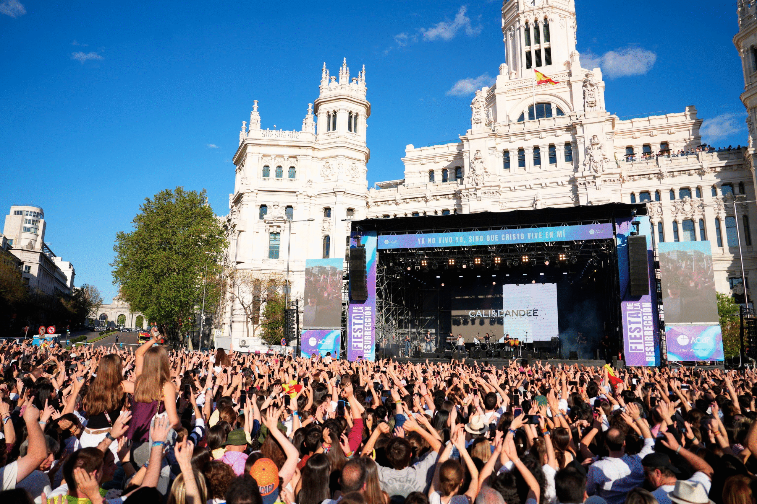 La III Fiesta de la Resurrección canta por el alma del Papa Francisco ante una Cibeles entregada a Hakuna, Cali & el Dandee y Beret | Madrid